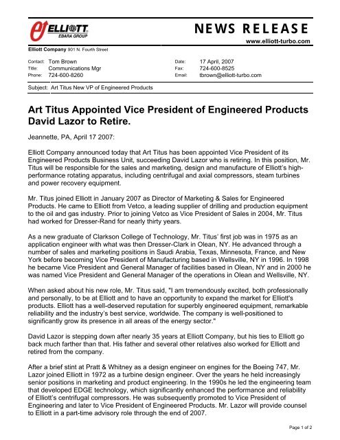 Art Titus Appointed Vice President Of Engineered Products David
